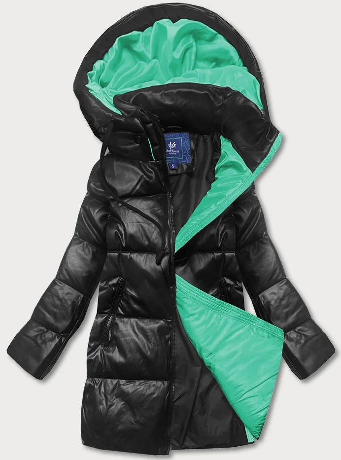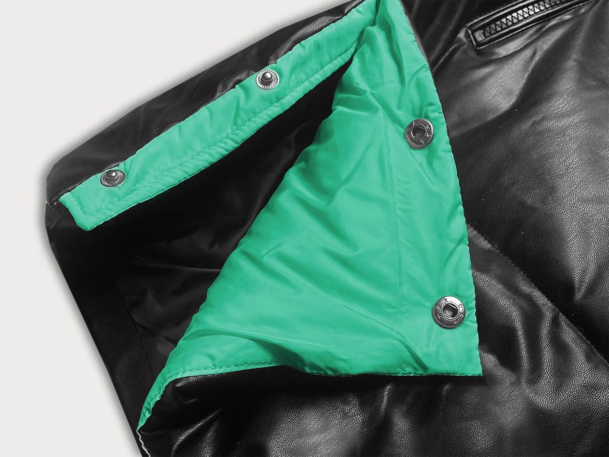 LUŹNA KURTKA DAMSKA Z EKOSKÓRY CZARNO-ZIELONA (AG6-20B)