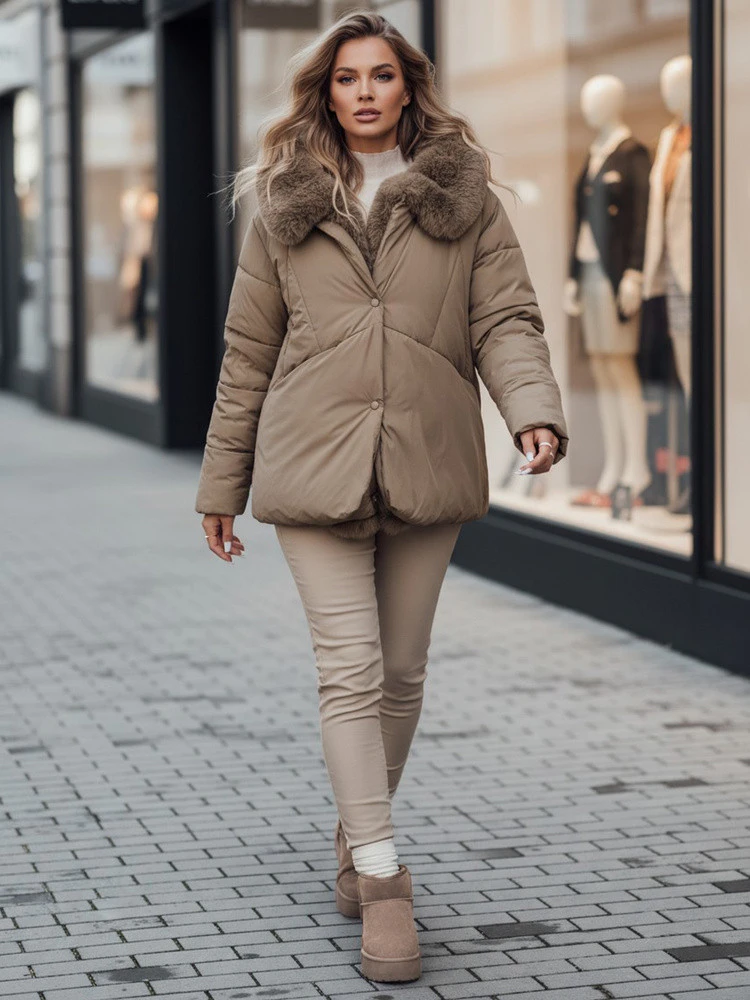 Přidání recenze k LUNAVI dámská prošívaná zimní bunda s kožešinou světle béžová FashionStreet TY4665z