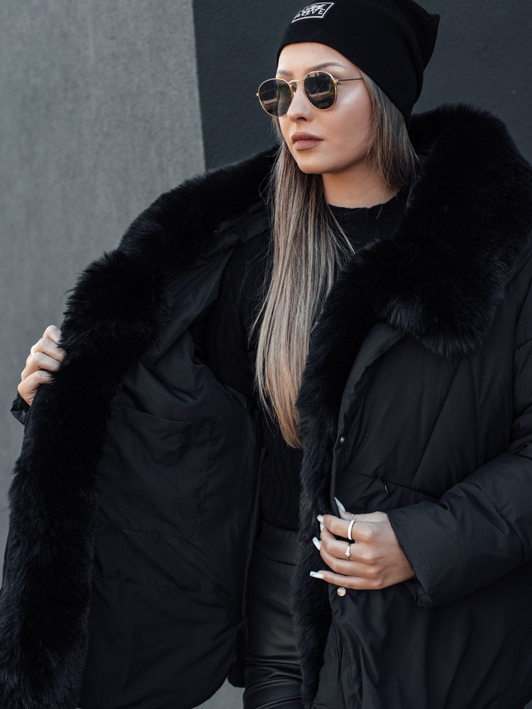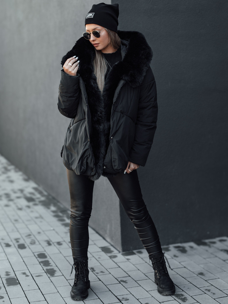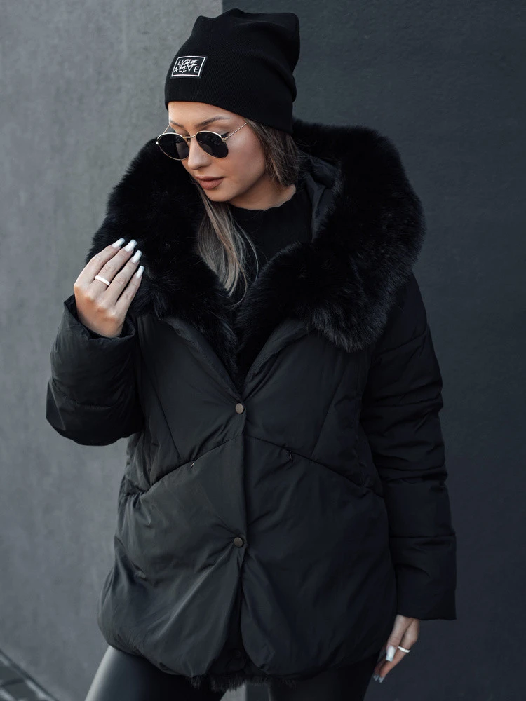 Přidání recenze k LUNAVI dámská zimní bunda prošívaná s kožešinou černá Dstreet TY4667