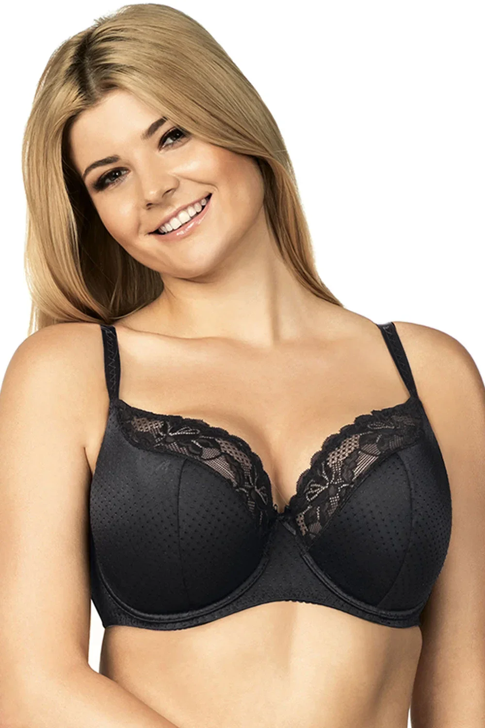 Podprsenka značky Lupo, model 112, s drátky, které podporují a tvarují prsa. svislé kostice na bocích. nastavitelná ramínka, neodnímatelná. kovové háčky na ramínka. zapínání na háčky. zapínání: na zádech. dvě řady svislých háčků. tři úrovně vodorovných háčků. vyrobeno ze 70% polyamidu, 20% elastanu, 10% bavlny. vlastnosti výrobku: elegantní maxi velikost s krajkou. dámský výrobek.