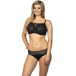 Podprsenka značky Lupo, model 131, s drátky, které podporují a tvarují prsa. Svislé kostice na bocích. Nastavitelná ramínka, neodnímatelná. Zapínání na háčky. Zapínání: na zádech. 2 řady svislých háčků. 3 úrovně vodorovných háčků. Výrobek je vyroben z 85 % polyamidu, 15 % elastanu. Dámský výrobek. Vlastnosti výrobku: síťovaný top 2 v 1. Podprsenka je vyrobena ze síťoviny.