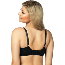 Biustonosz marki Lupo. Model 140. Posiada druty, które podpierają piersi odpowiednio je kształtując. Fiszbiny pionowe osadzone na bokach. Produkt posiada regulowane ramiączka bez możliwości ich odpięcia. Haczyki do ramiączek metalowe. Biustonosz zapinany na haftki. Miejsce zapięcia: tył. Dwa rzędy haftek pionowych. Trzy stopnie haftek poziomych. Produkt został wykonany z 85% poliamid, 15% elastan. Produkt damski. Boczki wzmacniane materiałem. Zalety produktu: soft klasyczny z siateczką.