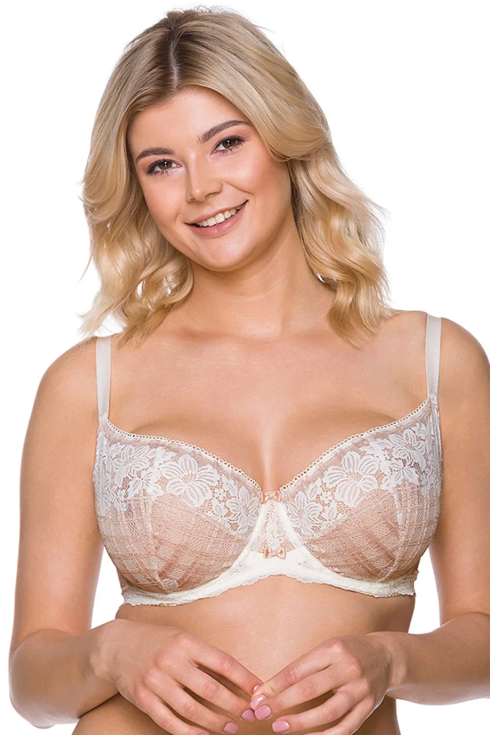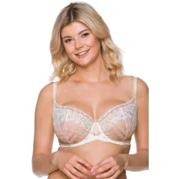 Podprsenka Lupo, model 2271, s drátky, které podporují a tvarují prsa, svislé kostice na bocích, nastavitelná ramínka bez možnosti odepnutí, kovové háčky na ramínkách, zapínání na háčky a oči, zadní díl, vyrobeno z 85% polyamidu, 15% elastanu, ženská barva.