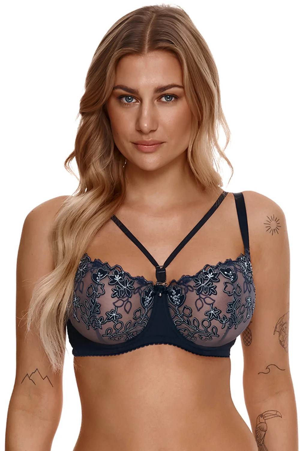 Podprsenka Lupo, model 2321, s drátky, které podporují a tvarují prsa. svislé kostice na bocích. nastavitelná ramínka, neodnímatelná. kovové háčky na ramínka. zapínání na háčky. zapínání: na zádech. dvě řady svislých háčků. tři úrovně vodorovných háčků. vyrobeno z 85 % polyamidu, 15 % elastanu. dámské oblečení.
