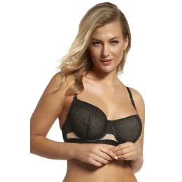 Podprsenka Lupo, model 2351, s drátky pro podporu a tvarování prsou. svislé kostice na bocích. nastavitelná ramínka, neodnímatelná. kovové háčky na ramínkách. zapínání na háčky. zapínání: na zádech. tři řady svislých háčků. čtyři úrovně vodorovných háčků. vyrobeno z 85 % polyamidu, 15 % elastanu. dámské oblečení.