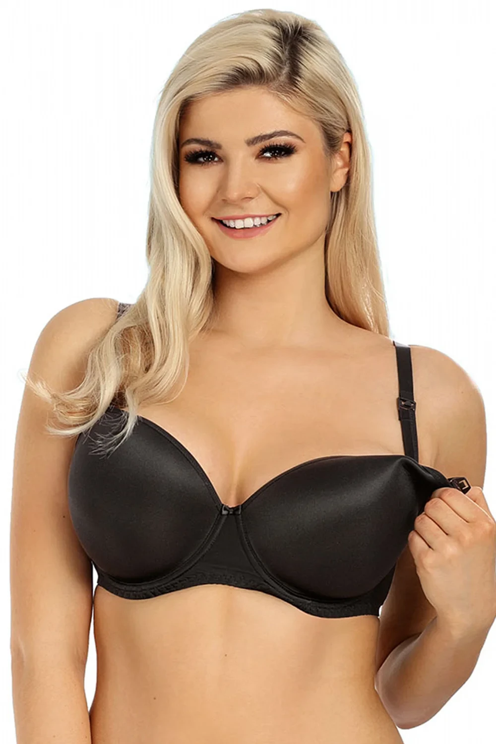Podprsenka Lupo, model 3109, s drátky pro podporu a tvarování prsou, nastavitelná ramínka, plastové háčky na ramínkách, zapínání na háčky, tři řady svislých háčků, čtyři řady vodorovných háčků, 70 % polyamid, 20 % elastan, 10 % bavlna, těhotenské oblečení, odnímatelné košíčky, ženská.Parametry