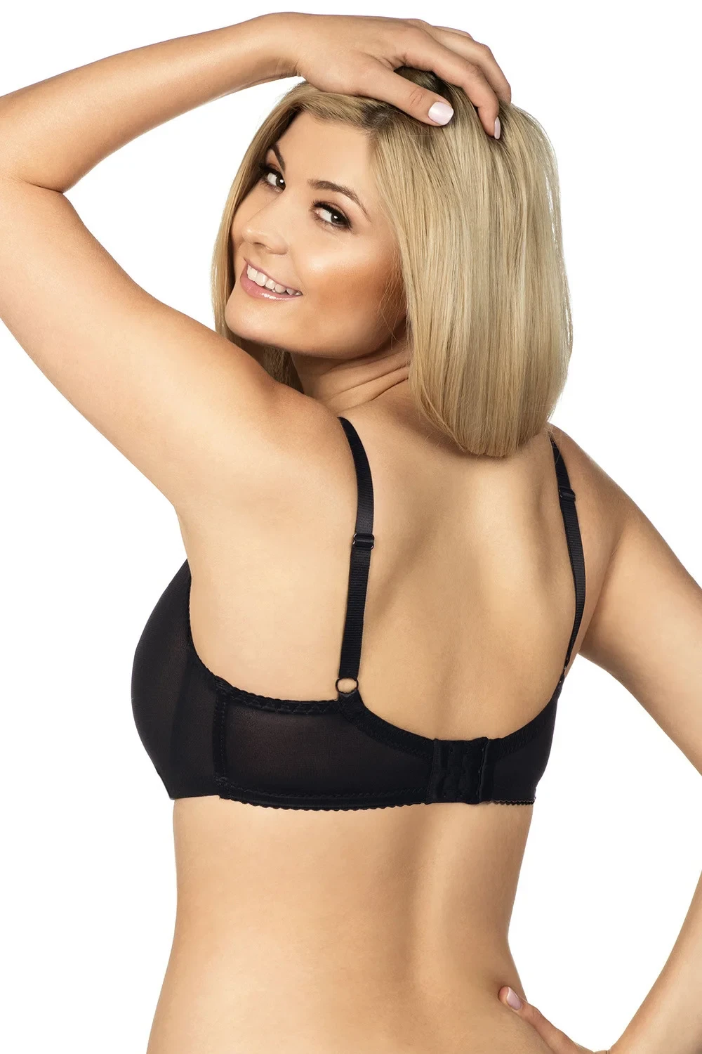 Podprsenka od Lupoline. Model 131. Má dráty, které prsa vhodně tvarují. Svislé velrybí kosti zasazené po stranách. Výrobek má nastavitelné popruhy bez možnosti odepnutí. Podprsenka se zapínáním na háčky a oči. Upevňovací bod: vzadu. Dvě řady svislých háčků. Tři stupně horizontálních háčků. Výrobek je vyroben z 85 % z polyamidu a 15 % z elastanu. Výhody produktu: horní část ze síťoviny 2 v 1. Výrobek pro ženy.