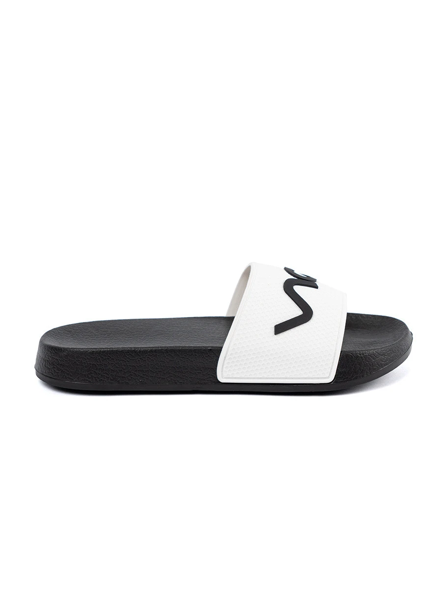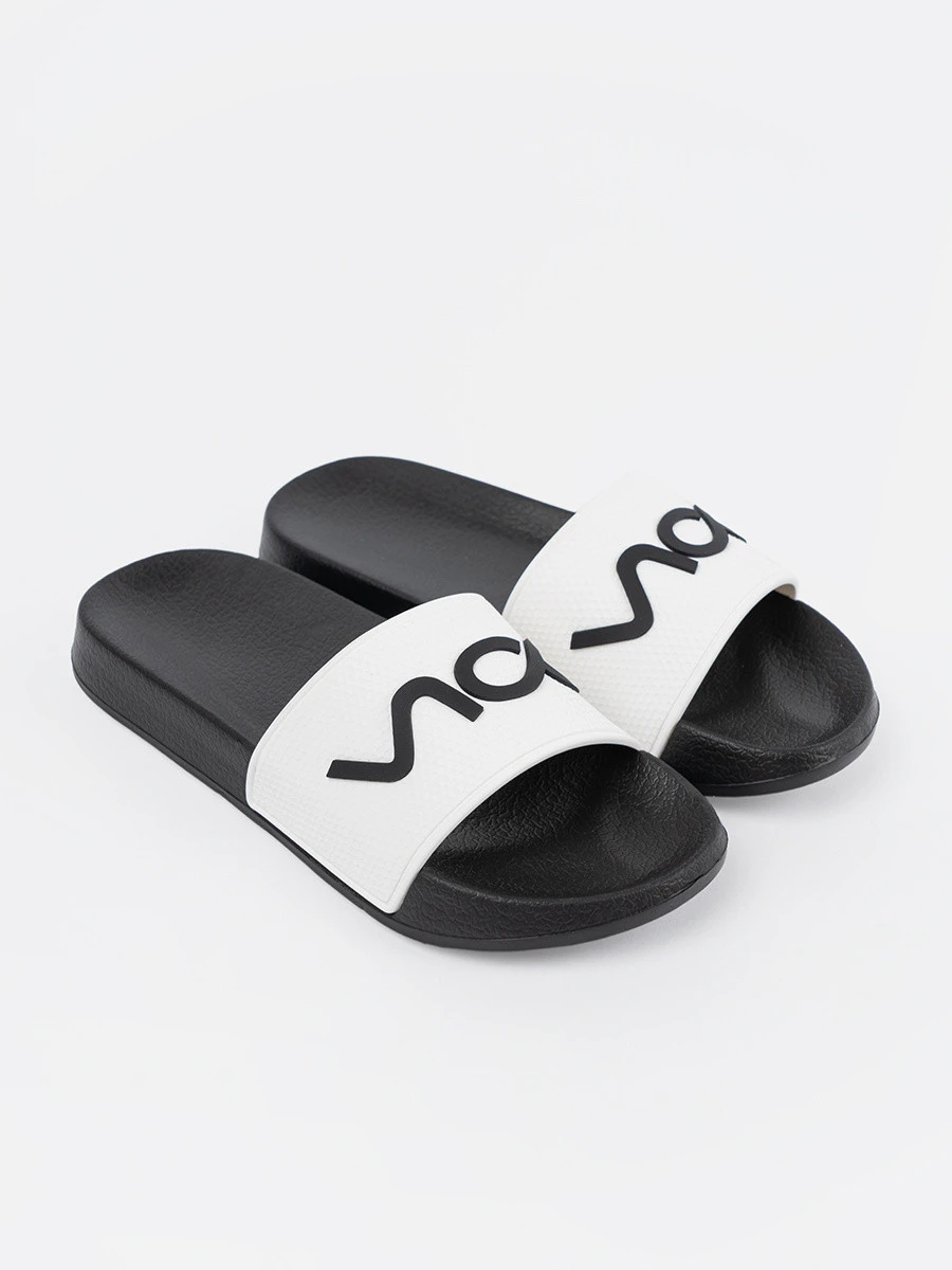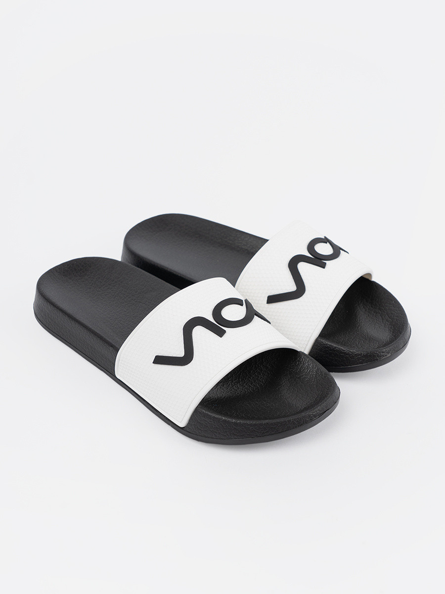 Luxusní Biało-czarny nazouváky dámské na plochém podpatku