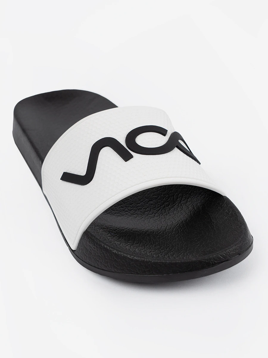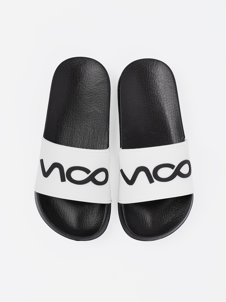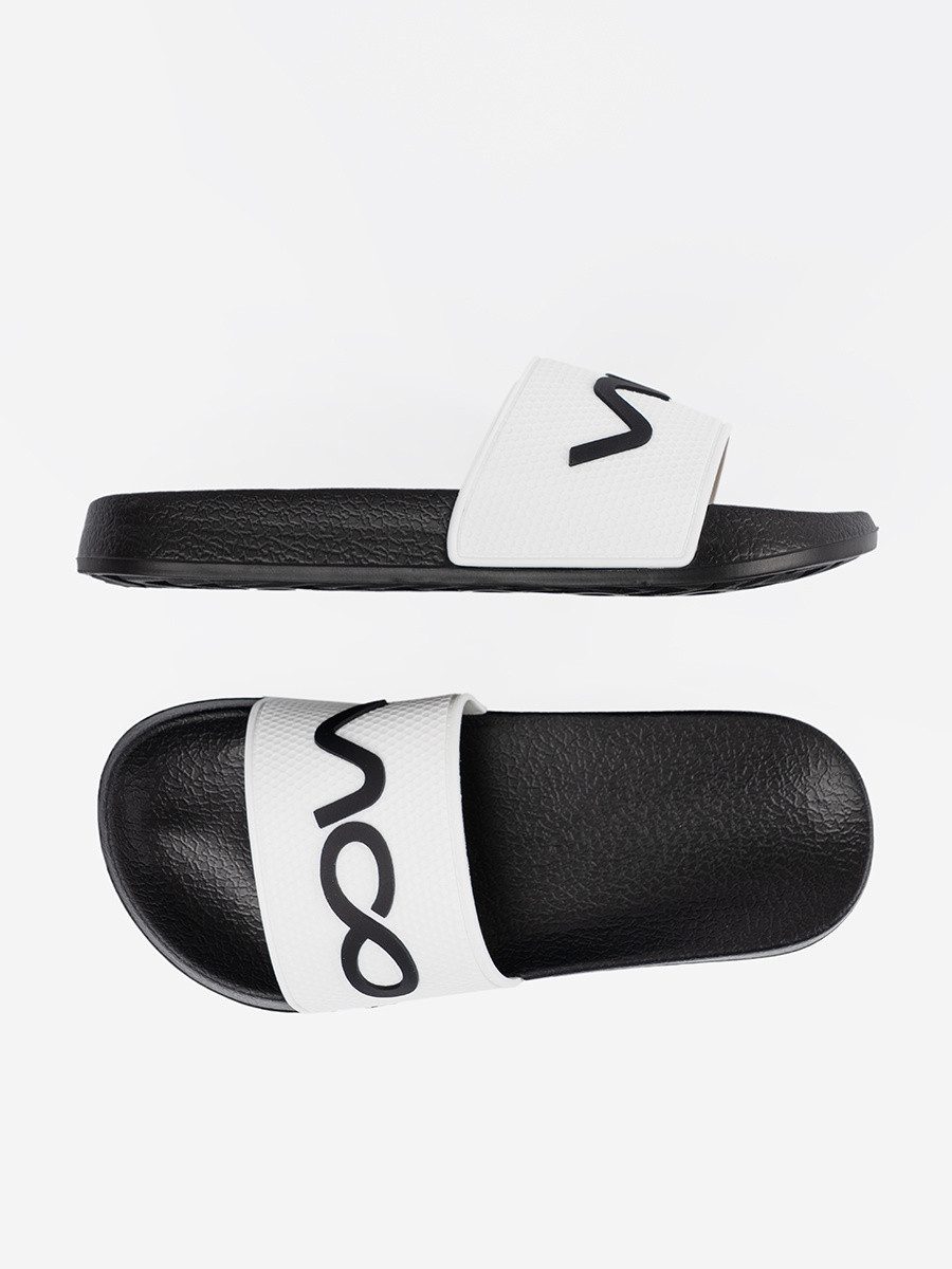 Luxusní Biało-czarny nazouváky dámské na plochém podpatku