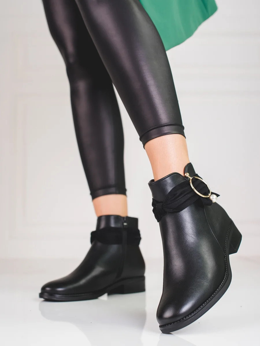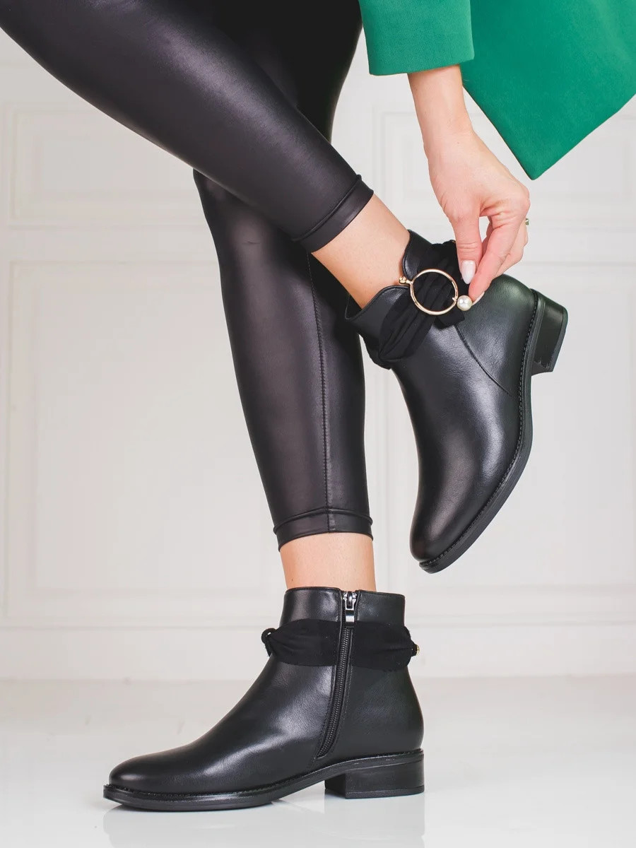 Přidání recenze k Luxusní černé dámské kotníčkové boty na plochém podpatku