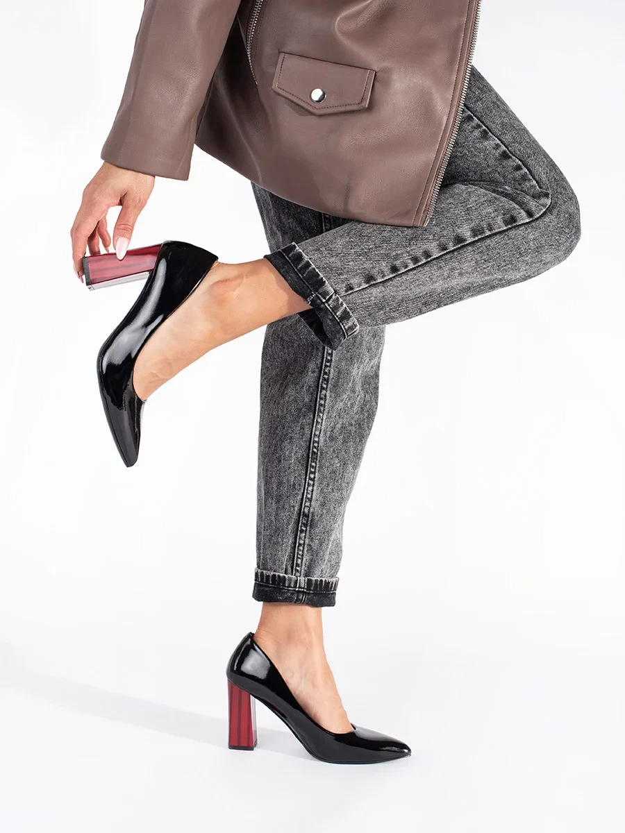 Luxusní černé lodičky dámské na širokém podpatku