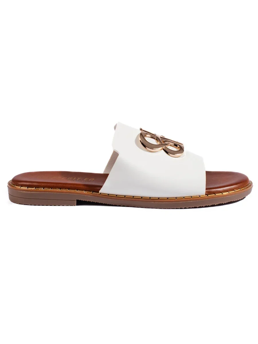Luxusní dámské bílé nazouváky na plochém podpatku