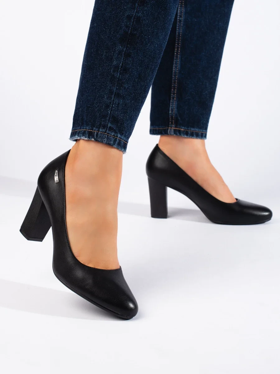 Luxusní dámské černé lodičky na širokém podpatku