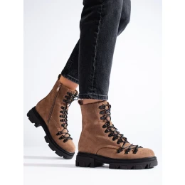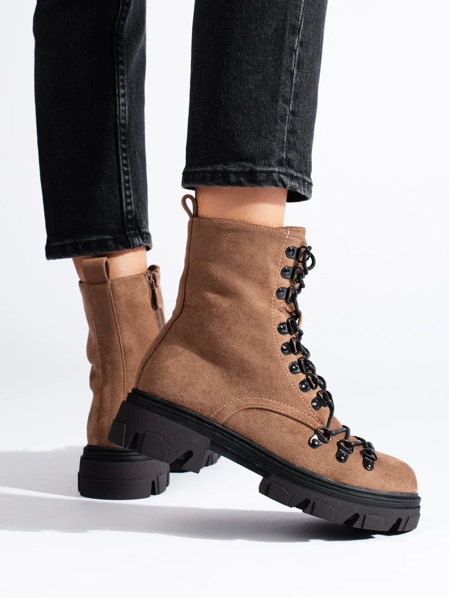 Luxusní dámské hnědé kotníčkové boty płaski