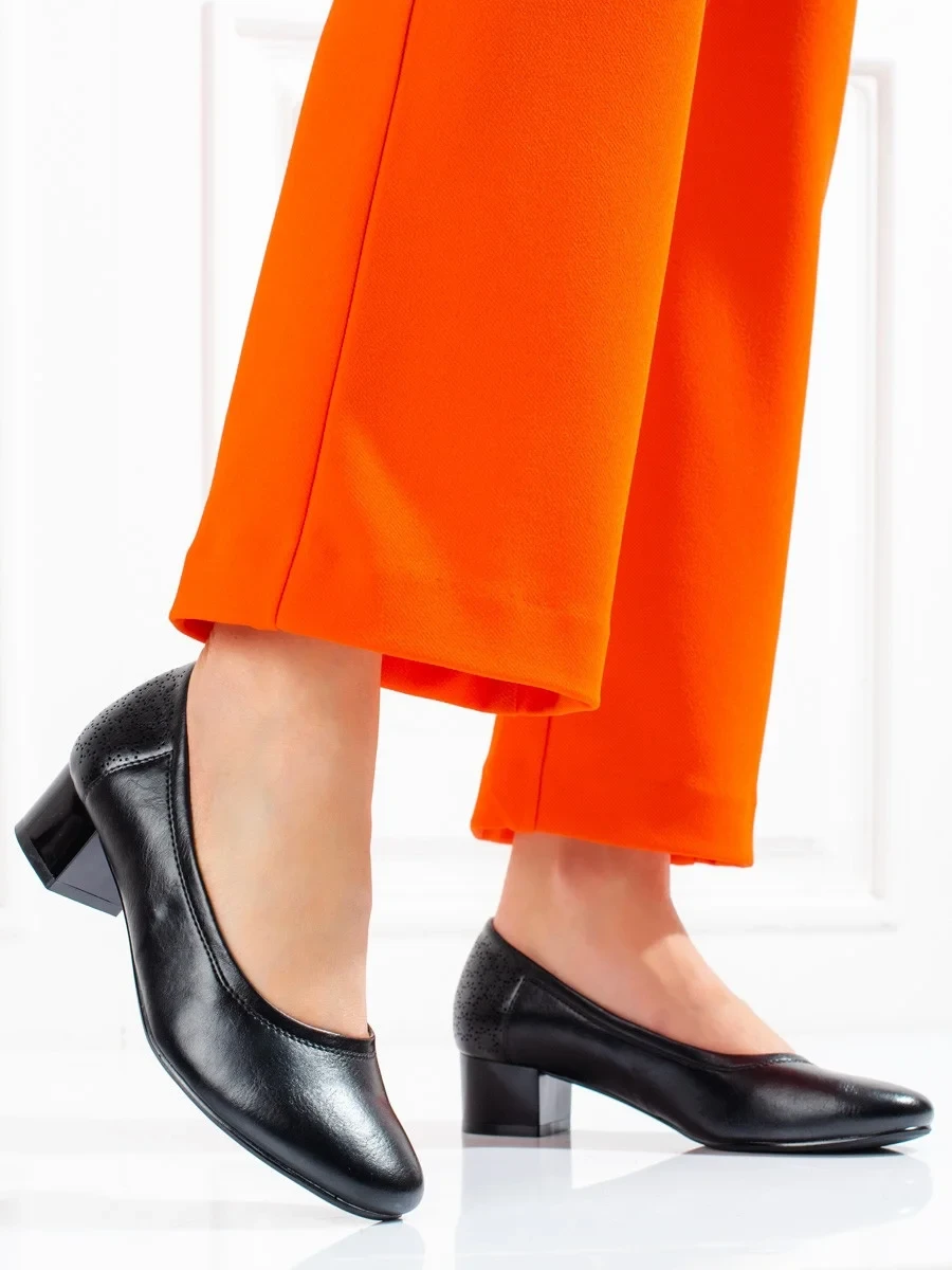 Luxusní dámské lodičky černé na širokém podpatku