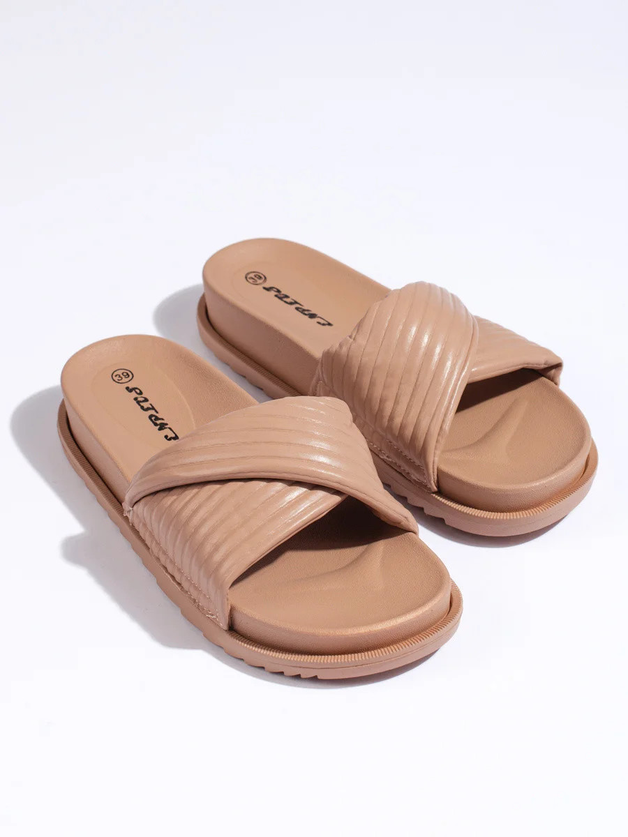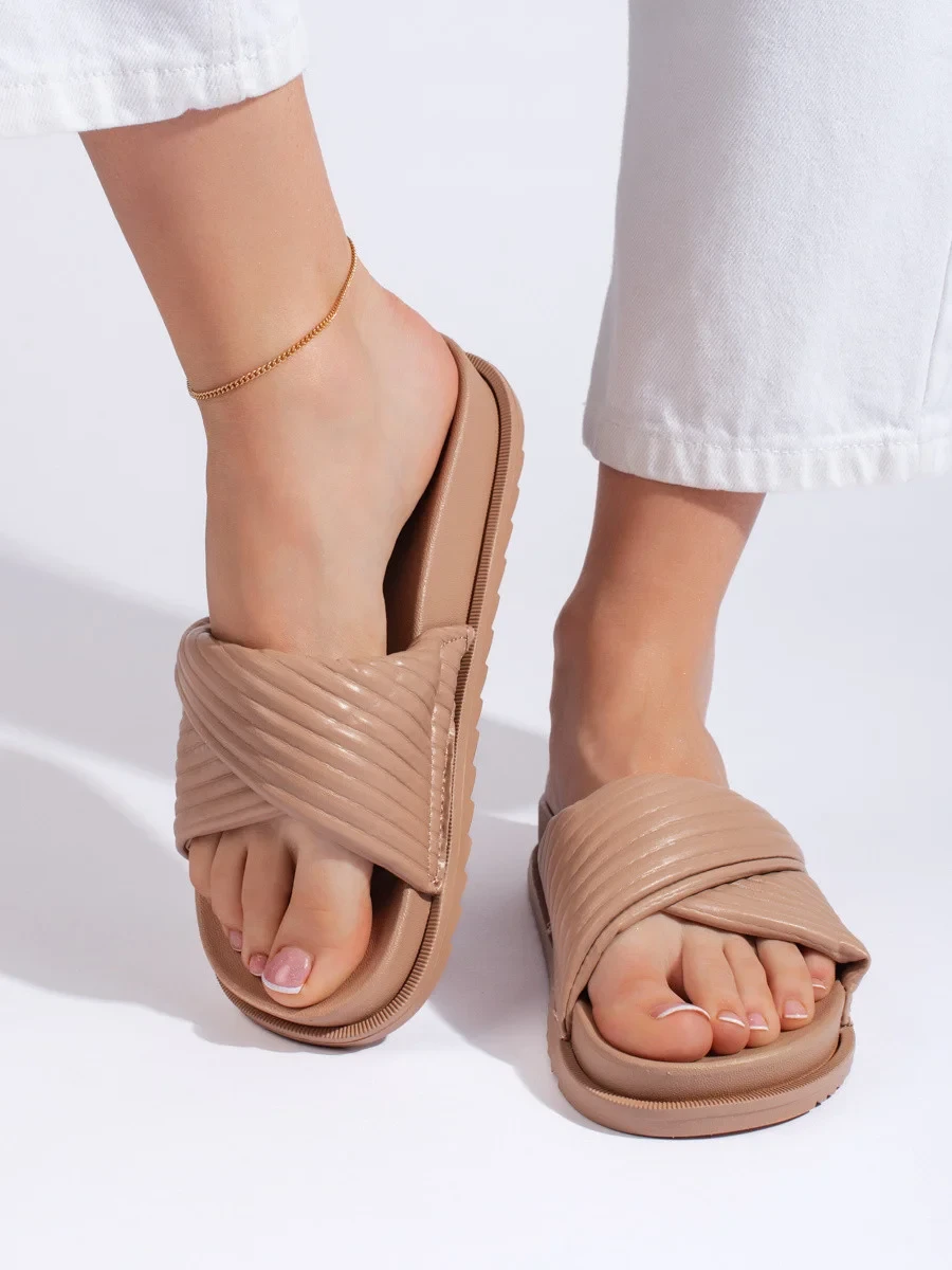 Luxusní dámské nazouváky hnědé na plochém podpatku