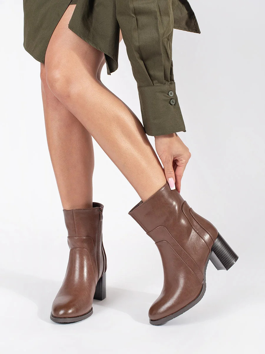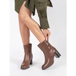 Luxusní hnědé dámské kotníčkové boty na širokém podpatku