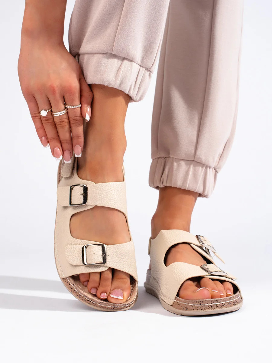 Přidání recenze k Luxusní hnědé sandály dámské na plochém podpatku