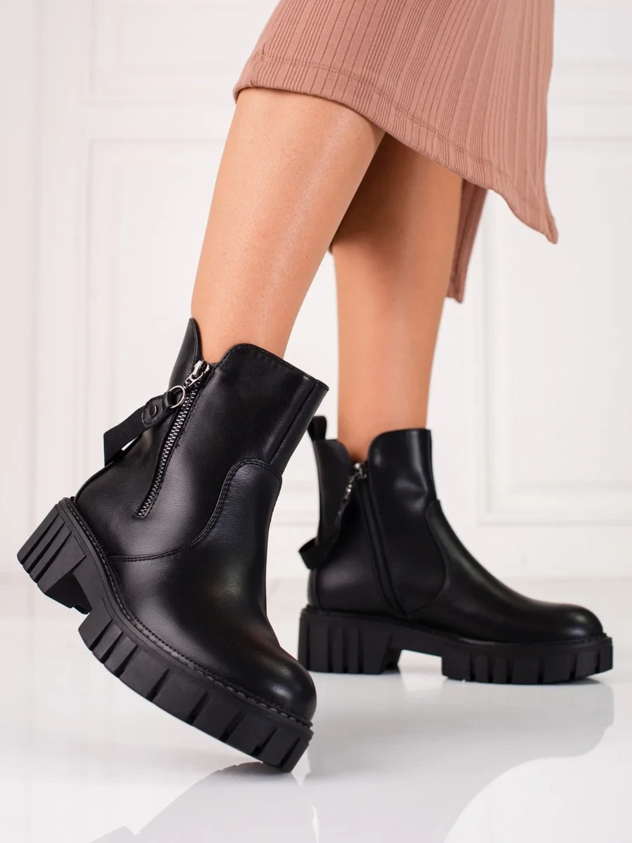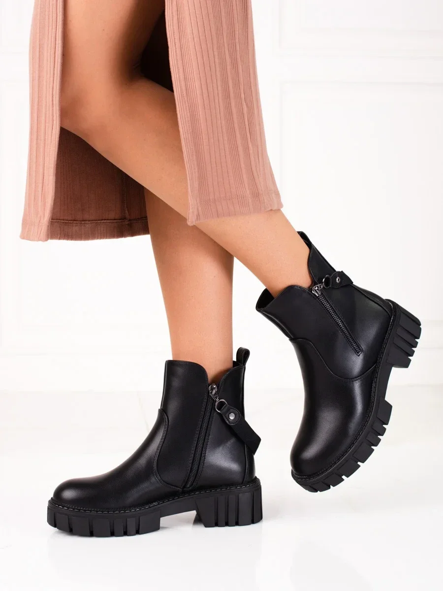 Přidání recenze k Luxusní kotníčkové boty dámské černé na plochém podpatku