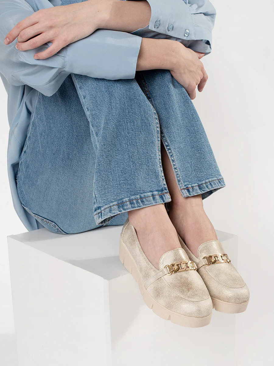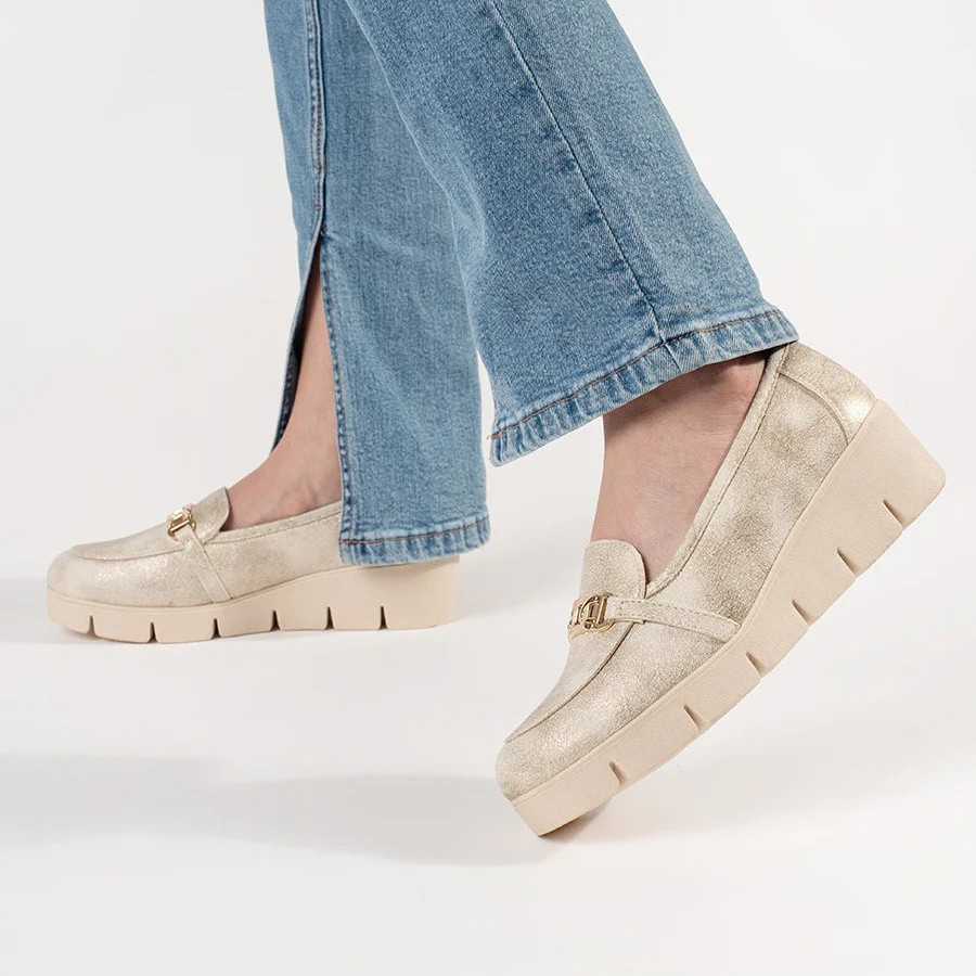 Přidání recenze k Luxusní mokasíny zlaté dámské na klínku