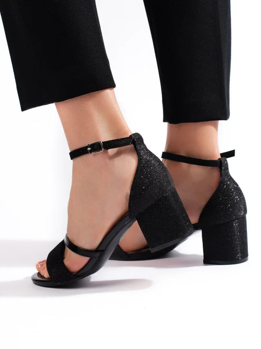 Luxusní sandály dámské černé na širokém podpatku
