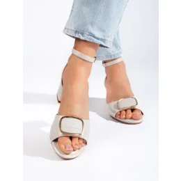 Přidání recenze k Luxusní šedo-stříbrné dámské sandály na širokém podpatku