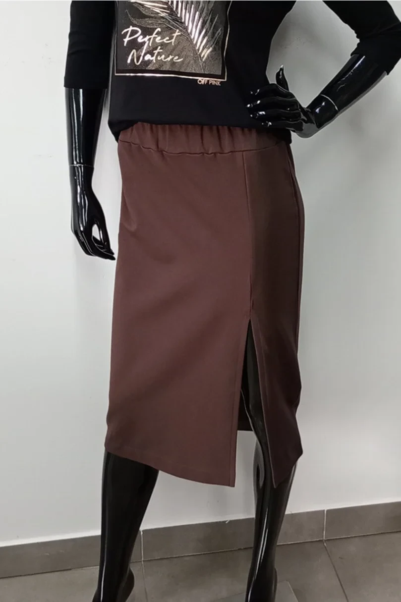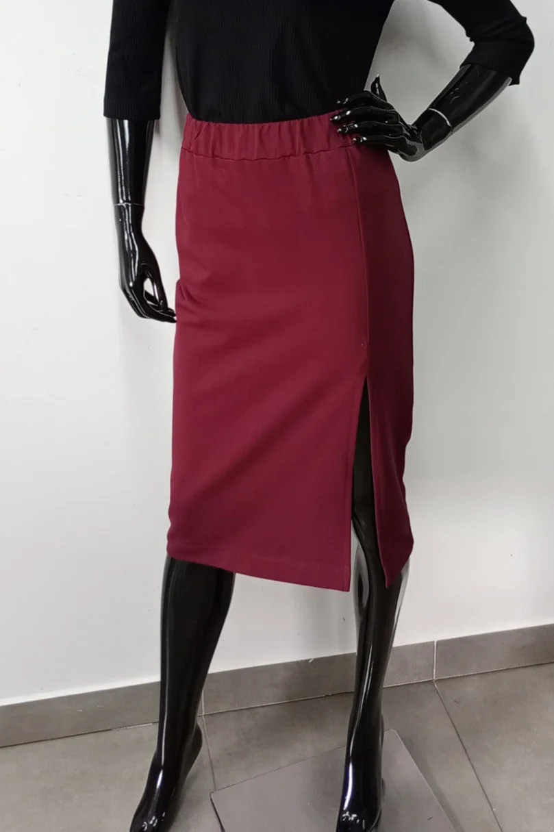 Sukně má jemný rozparek, který zvýrazňuje nohy a dodává jim lehkost a ženský půvab. Její midi délka je nejen stylová, ale také pohodlná a praktická, ideální pro chladnější i teplejší dny. Vytvořte si s naší sukní nezapomenutelný styl. Skvěle se hodí do práce i na večerní vycházky, buďte trendy a ciťte se výjimečně každý den!