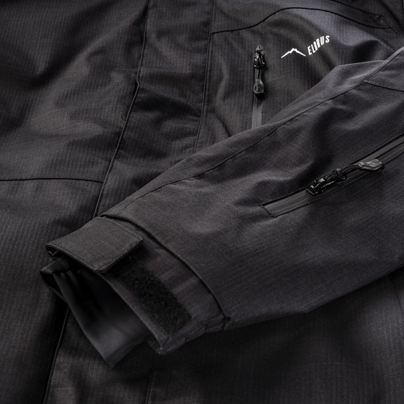 Zimní bunda od společnosti Elbrus poskytuje ochranu před sněhem a deštěm díky voděodolné membráně 10 000 mm, což znamená, že bunda zvládne vodní sloupec 10 000 mm působící na 1 m² tkaniny.