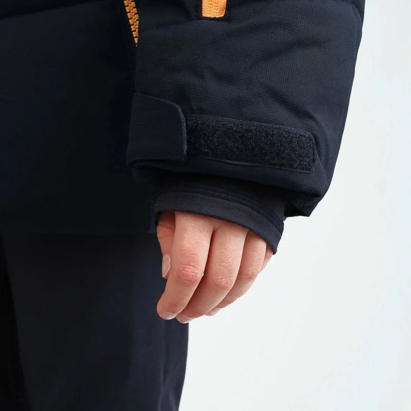 - Má sněhový pás, který zabraňuje vniknutí sněhu pod bundu, vložky z lycry v rukávech, suchý zip na zápěstí a kapsu na skipas.