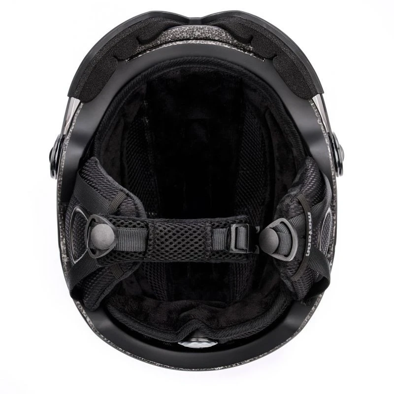 - Přilba má integrované chrániče sluchu a odnímatelné antialergické polstrování pro velmi pohodlné používání.