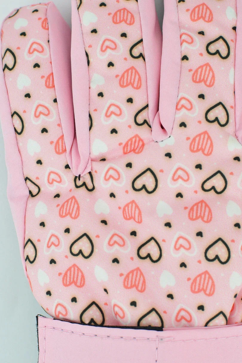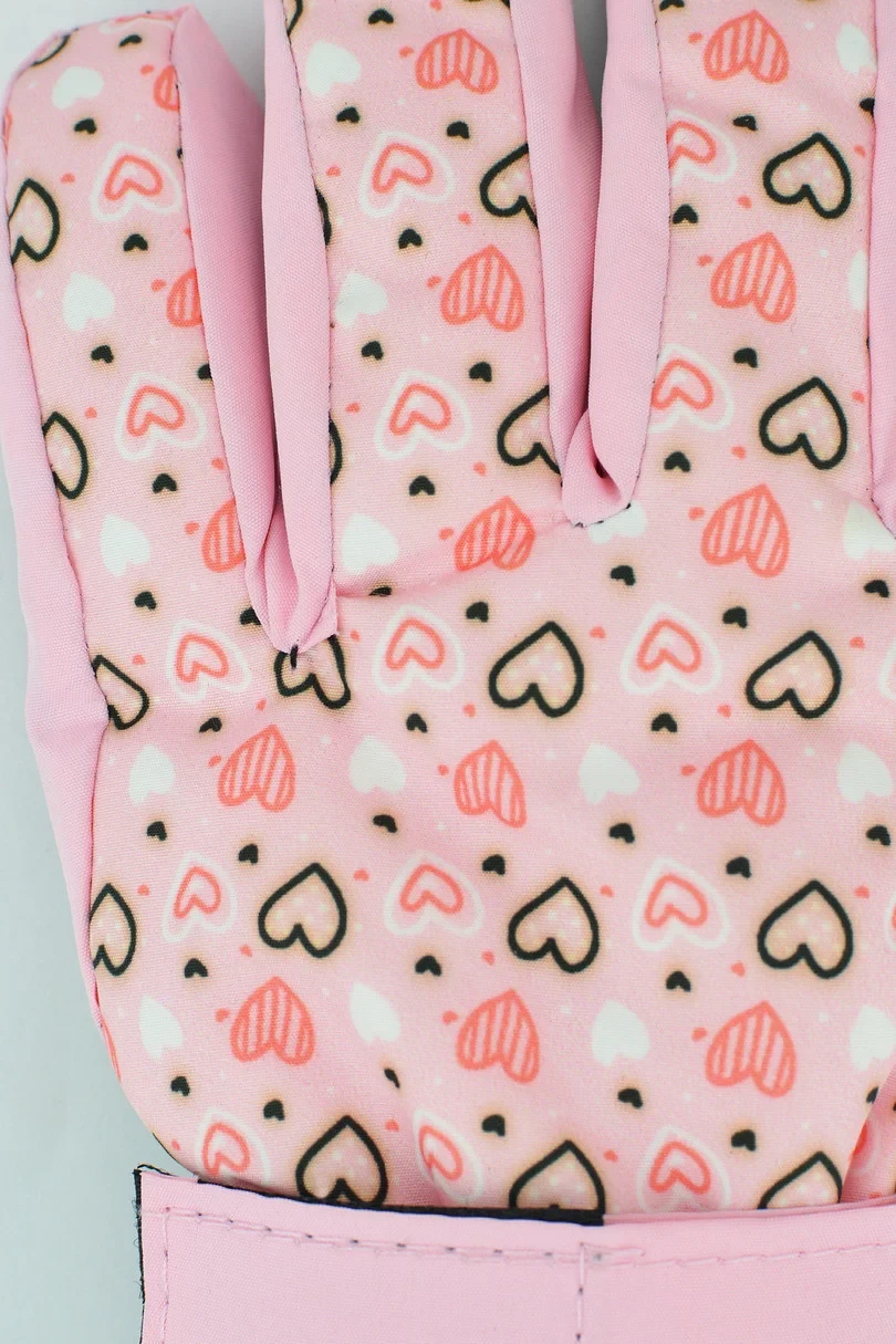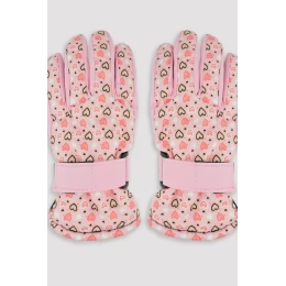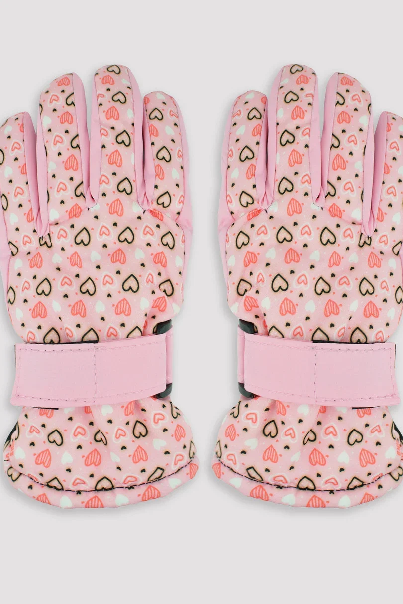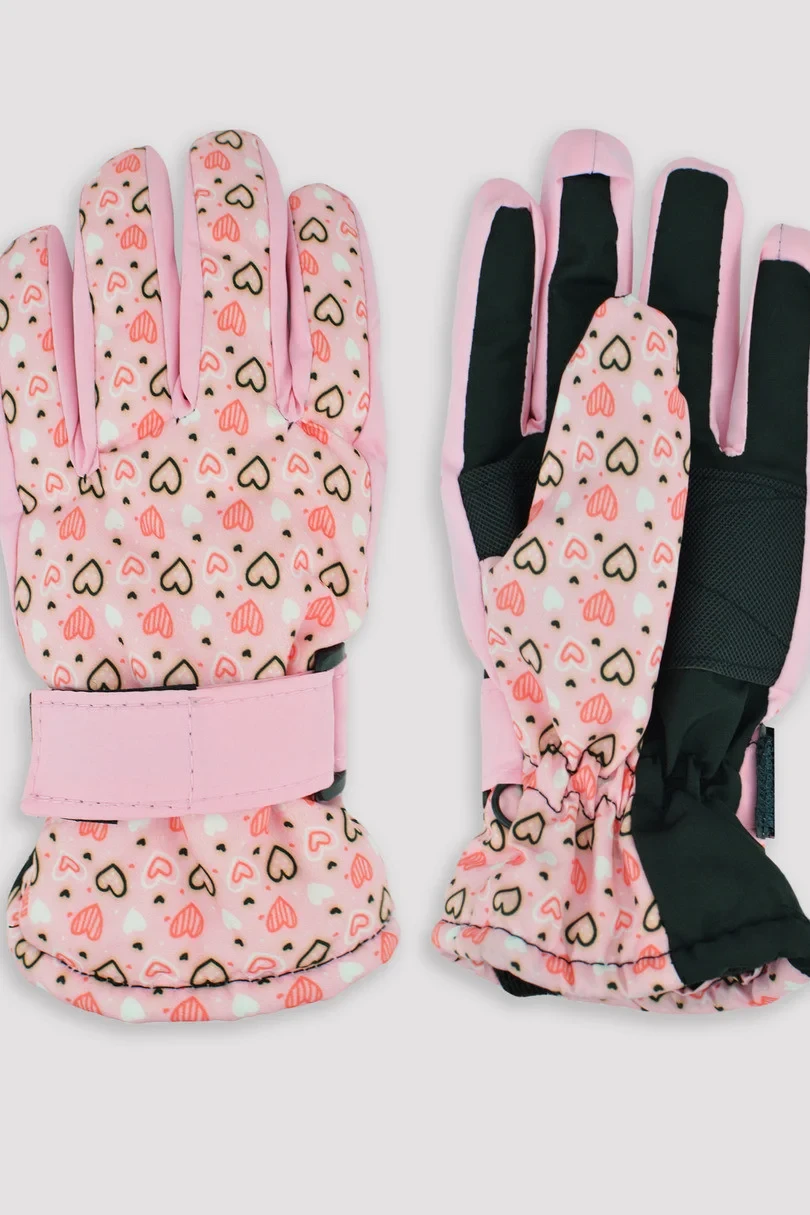 Potisknuté, zateplené, pětiprsté orthalionové rukavice pro dívky. Rukavice zakončené manžetou s páskem pro nastavení šířky - dobře sedí na rukou, chrání před sněhem.