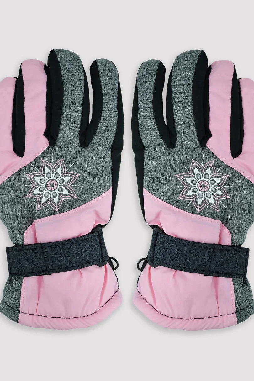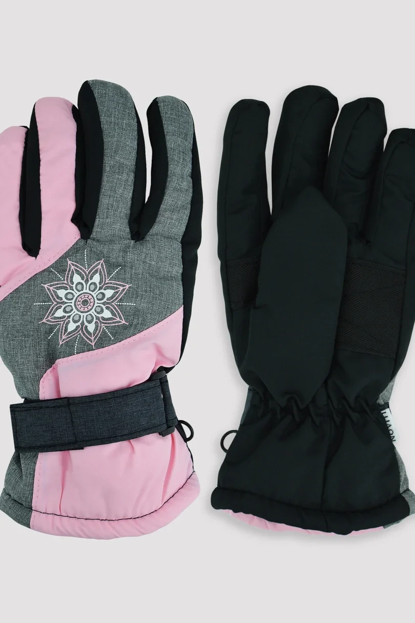 Rukavice Orthalion s potiskem, zateplené, pětiprsté pro dívky. Rukavice zakončené manžetou s páskem pro nastavení šířky - dobře drží na ruce, chrání před sněhem.