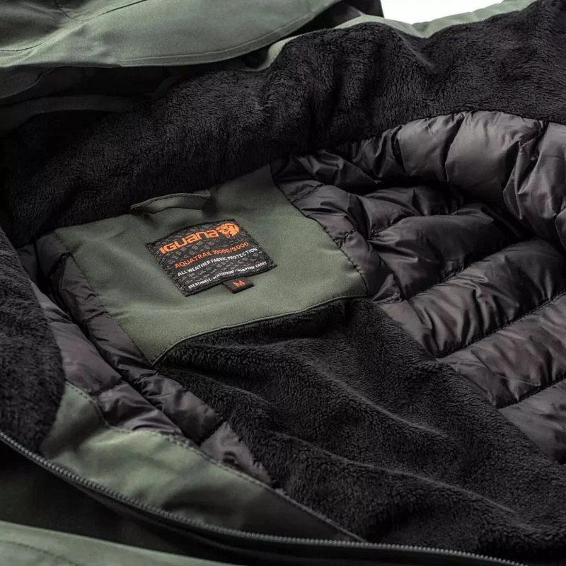 Pánská zimní bunda LOTHO značky Iguana. Poskytuje ochranu před sněhem a deštěm díky voděodolné membráně s 10 000 mm H²O.bunda je vybavena bočními kapsami a kapsou na skipas. Zip s vysokým stojáčkem je zakončen nášivkou chránící bradu. Bunda LOTHO má navíc kapuci s bočním nastavením.sněhová zástěra, která se dokonale osvědčí při silných srážkách i případném převrácení na sněhu. Povlak DWR je druh speciální impregnace tkaniny, která zvyšuje povrchové napětí vody a jejímž hlavním účelem je zajistit vysoký stupeň voděodolnosti. Bunda je vyrobena z odolného polyesteru a zajistí dlouhou životnost. Výplň z kachního peří a prachového peří skvěle udržuje teplo. Celek byl zajištěn lepenými švy, aby se zabránilo roztržení a dalšímu utěsnění bundy.
