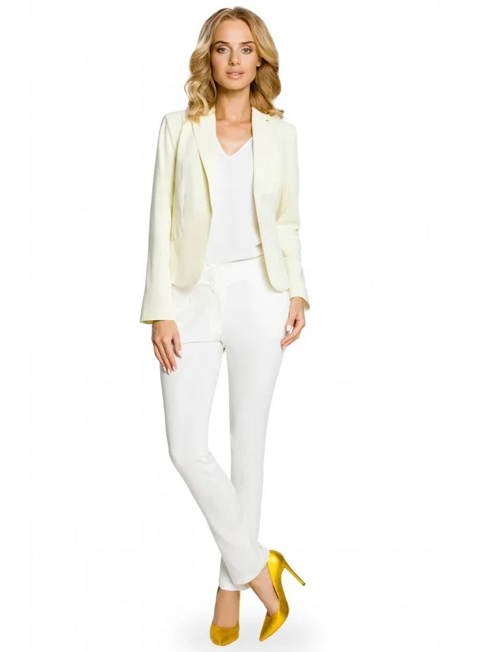 65 % polyester 30 % viskóza 5 % elastan Klasické sako s dlouhým rukávem, zapínání na jeden knoflík. Stonkové klopy. Plně podšité. Lehce polstrovaná ramena. Kapsy na obou stranách. Na hrudi a na zádech je prošívaný.