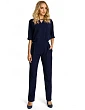65 % polyester 30 % wiskoza 5 % elastan Kombinéza s kimonovým vrškem a elegantními kalhotami s rovnými nohavicemi. Jednoduchý a prostý, ale zároveň nesmírně elegantní každodenní i večerní look.