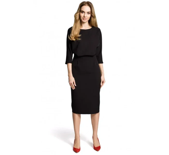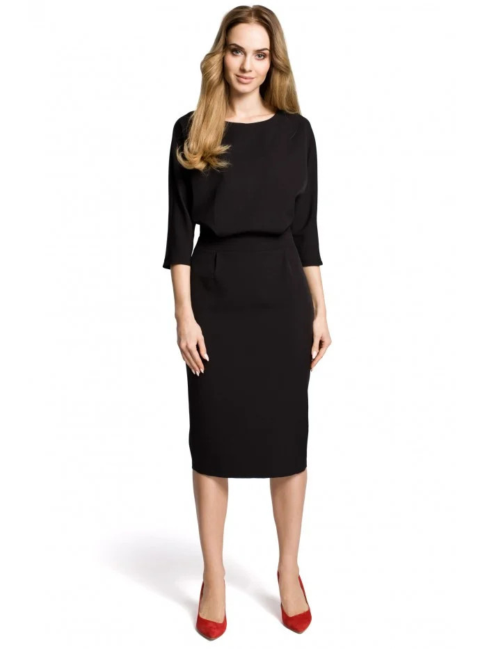 V těchto krásných denních šatech si můžete dopřát eleganci. Volný top s úzkými rukávy kontrastuje s klasickou tužkovou sukní.