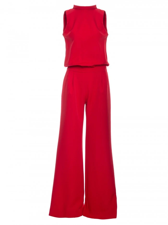 95% polyester 5% elastan Vylepšete svůj večerní vzhled na okouzlující úroveň v tomto overalu bez rukávů s rozšířenými nohavicemi, ohrnutým výstřihem a odvážnými rozštěpenými zády. PODROBNOSTI O PRODUKTU: tkaný materiál bez rukávů drapérie top s ohrnutým výstřihem rozštěpená záda s mini zapínáním na druky nízký pas boční kapsy široké nohavice naše modelka měří 171 cm a nosí velikost S