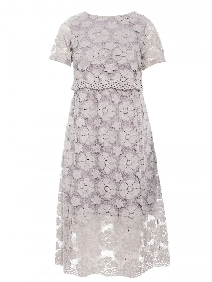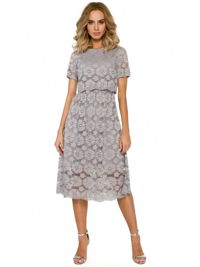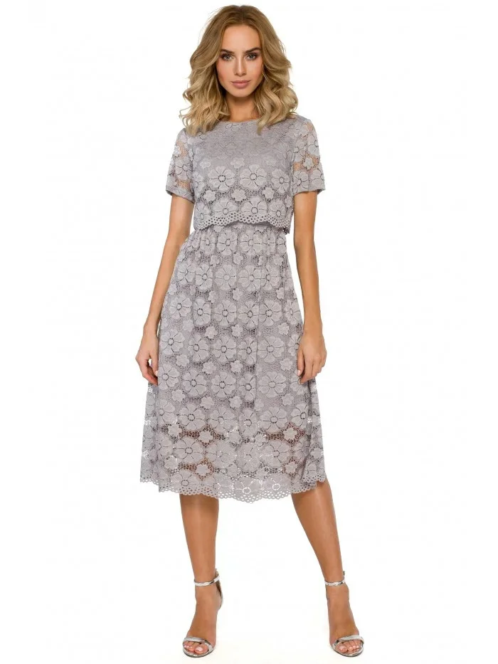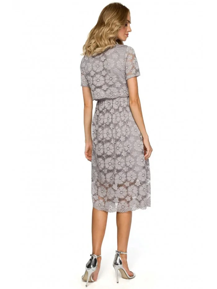M405 Krajkové midi šaty s výstřihem - šedé