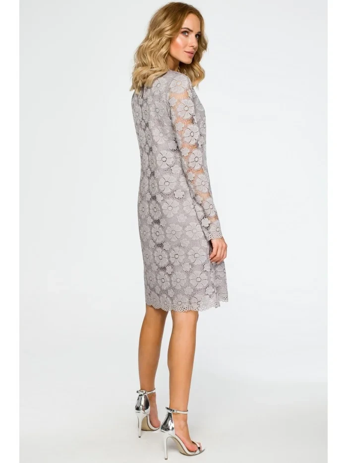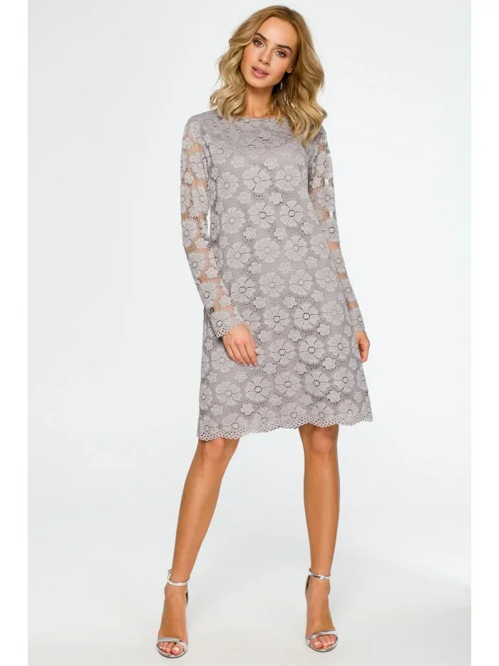 M406 krajkové šaty do áčka s dlouhými rukávy - šedé