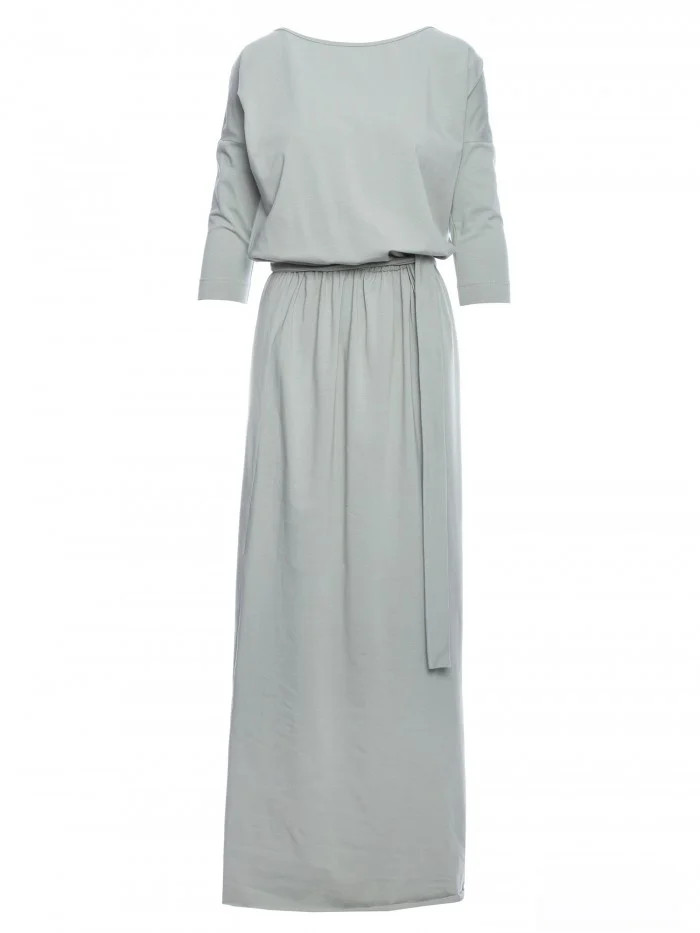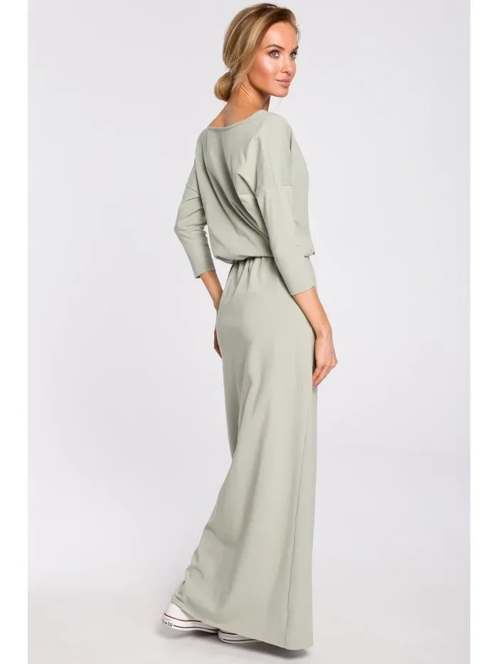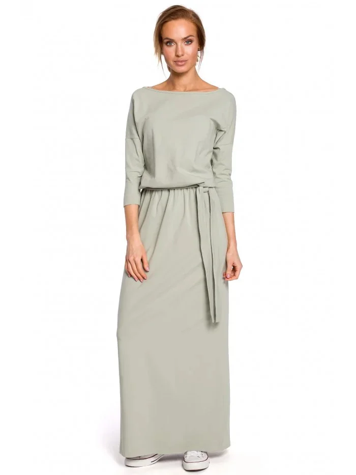 M435 Maxi bavlněné šaty s páskem na zavazování - pistáciová barva