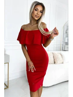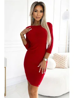 Dámské pletené šaty s rolákem M542 cihlově červené - Moe
