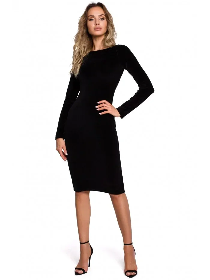 M565 Sametové tužkové šaty - černé