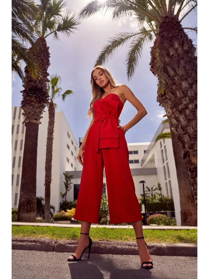 95% polyester 5% elastan Rozbijte stereotypy a ukažte svou individualitu. S takovýmto příležitostným overalem to na večírku roztočíte! Efektní živůtek bez ramínek s mašlí a zavazovacím páskem, který vám zpevní pas, lichotí vaší siluetě, široké nohavice v délce do půli lýtek podtrhují originální charakter outfitu. INFORMACE O PRODUKTU: tkaná látka jednodílný overal bez ramínek přední překrytí faux wrap a zavazovací pásek vymezený ozdobnou mašlí detaily kostic vpředu i vzadu široké nohavice délka 7/8 boční kapsy zadní zapínání na zip naše modelka měří 171 cm a nosí velikost S