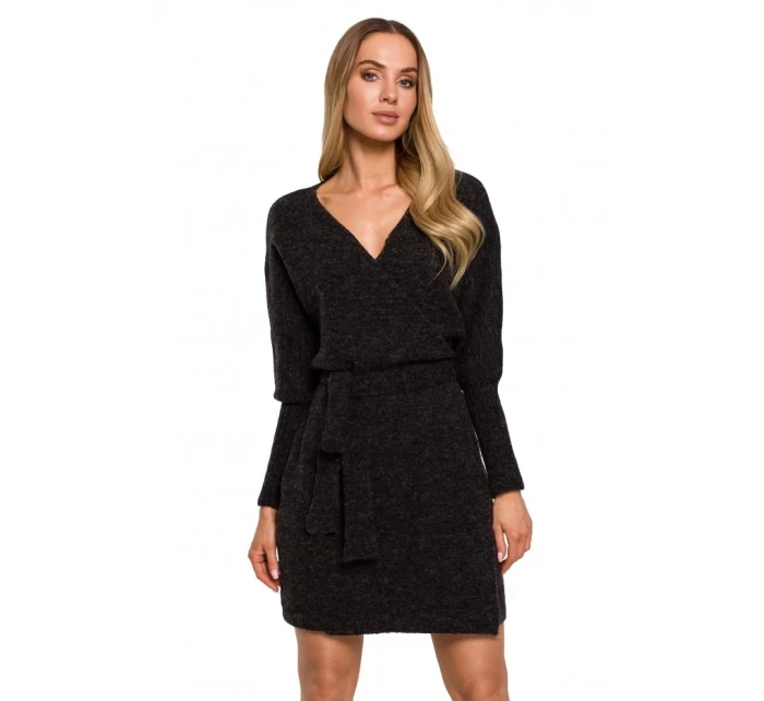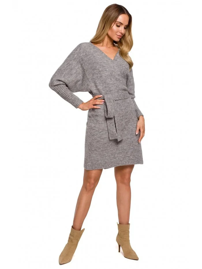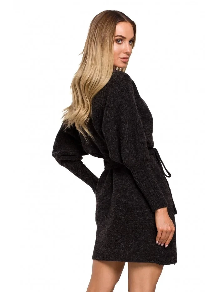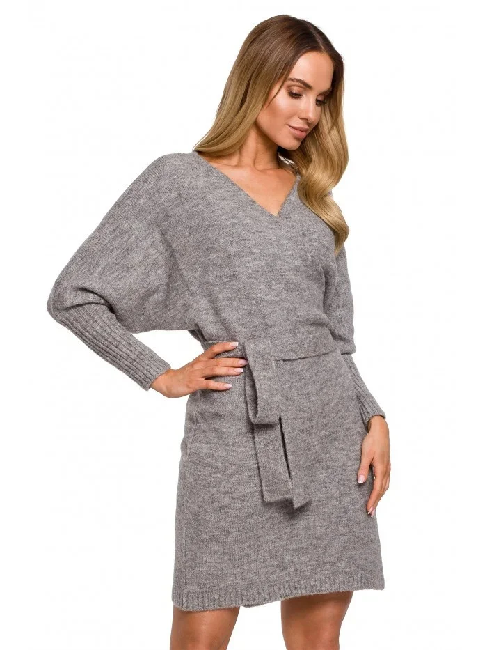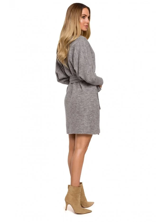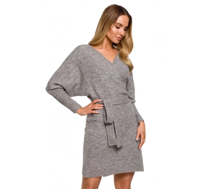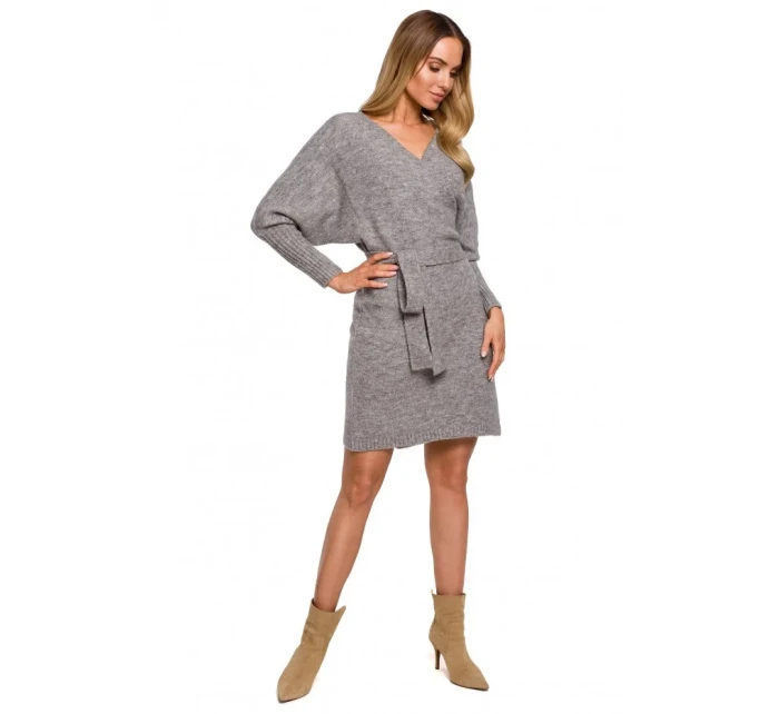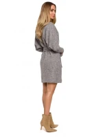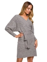 M631 Zavinovací svetrové šaty s vázáním - vřesové