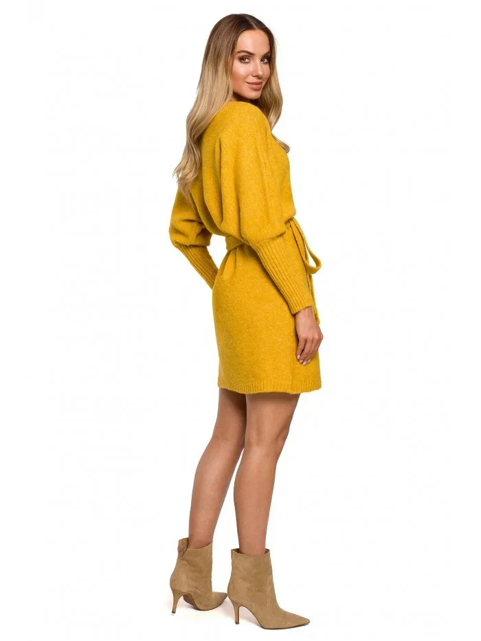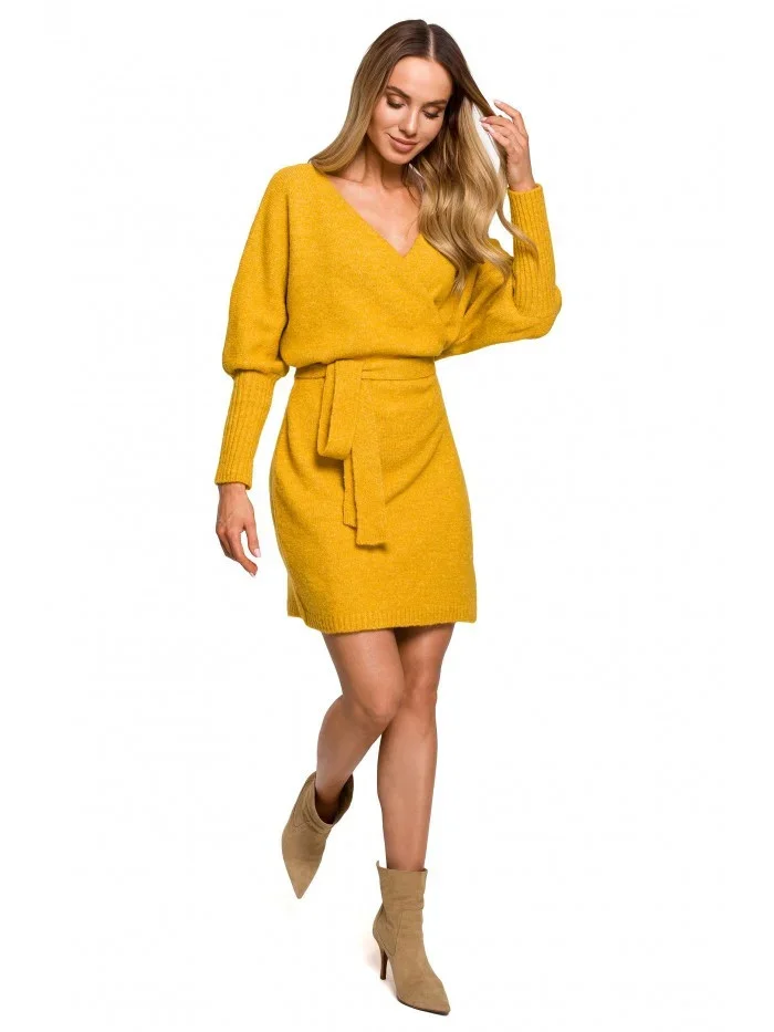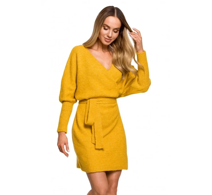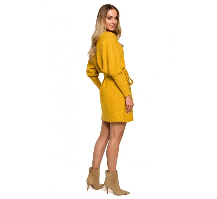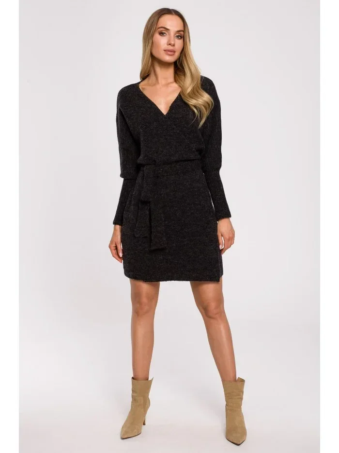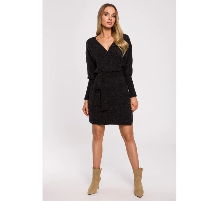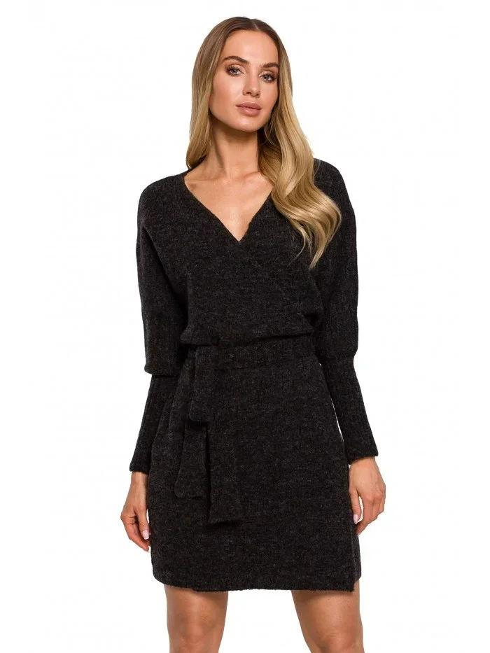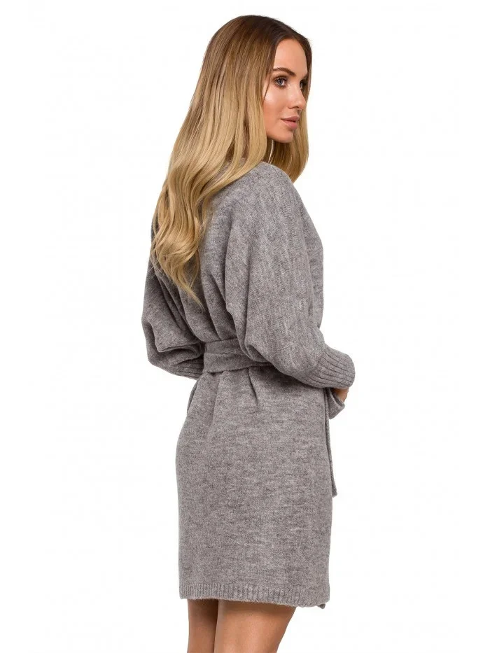 M631 Zavinovací svetrové šaty s vázáním - vřesové