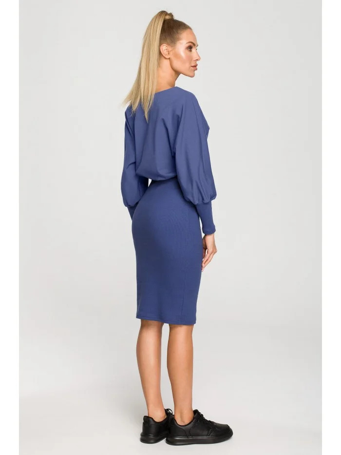 M690 Kombinované pletené šaty - indigo