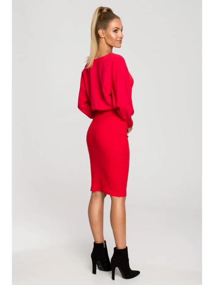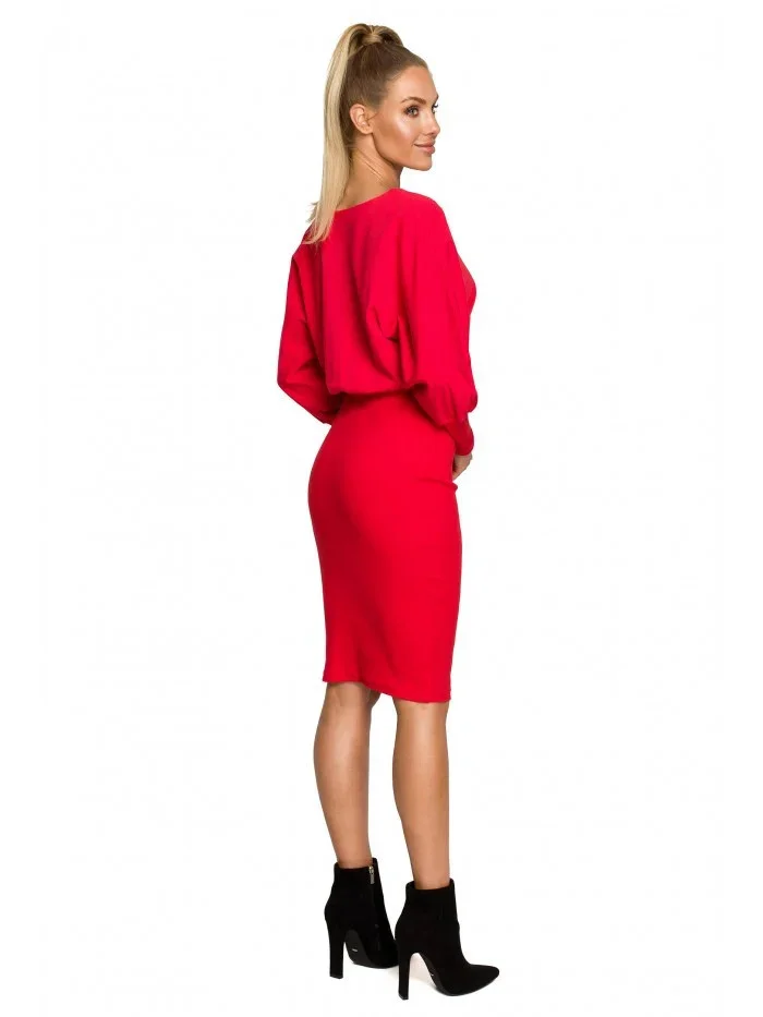Přidání recenze k M690 Pletené šaty v kombinaci hladké - červené