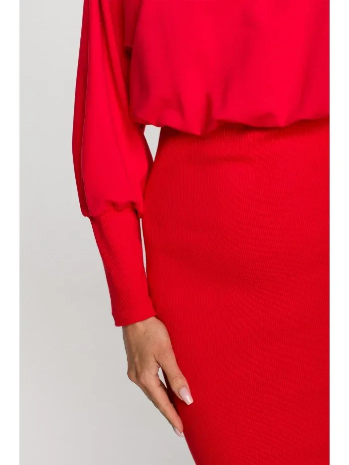 M690 Pletené šaty v kombinaci hladké - červené