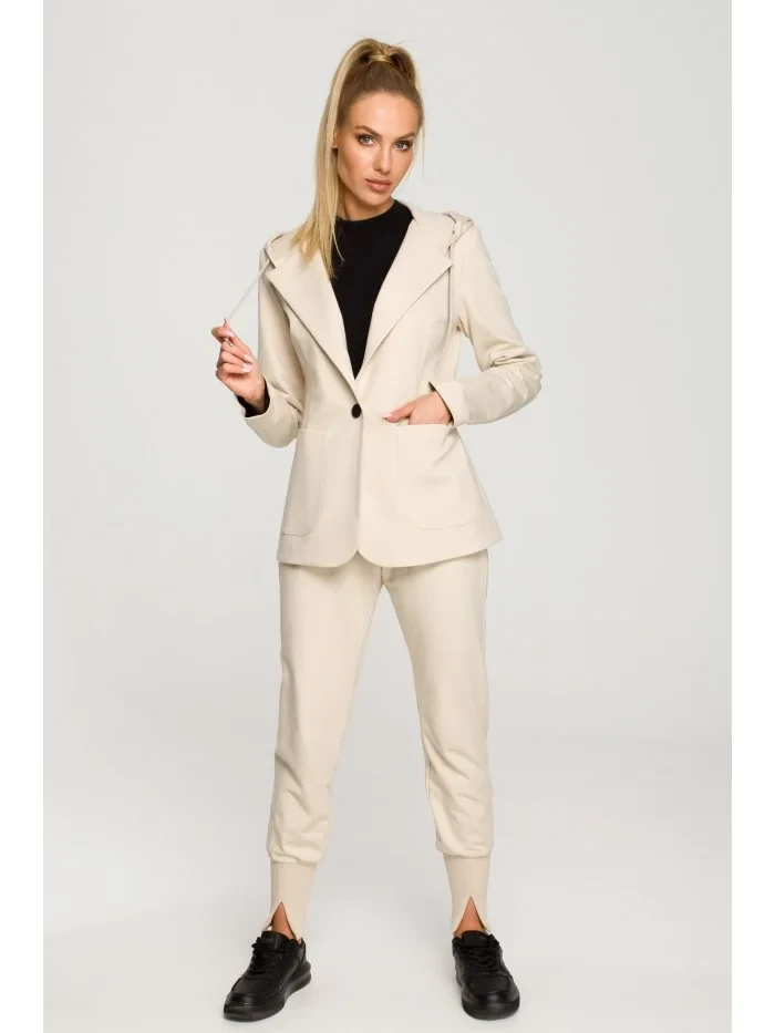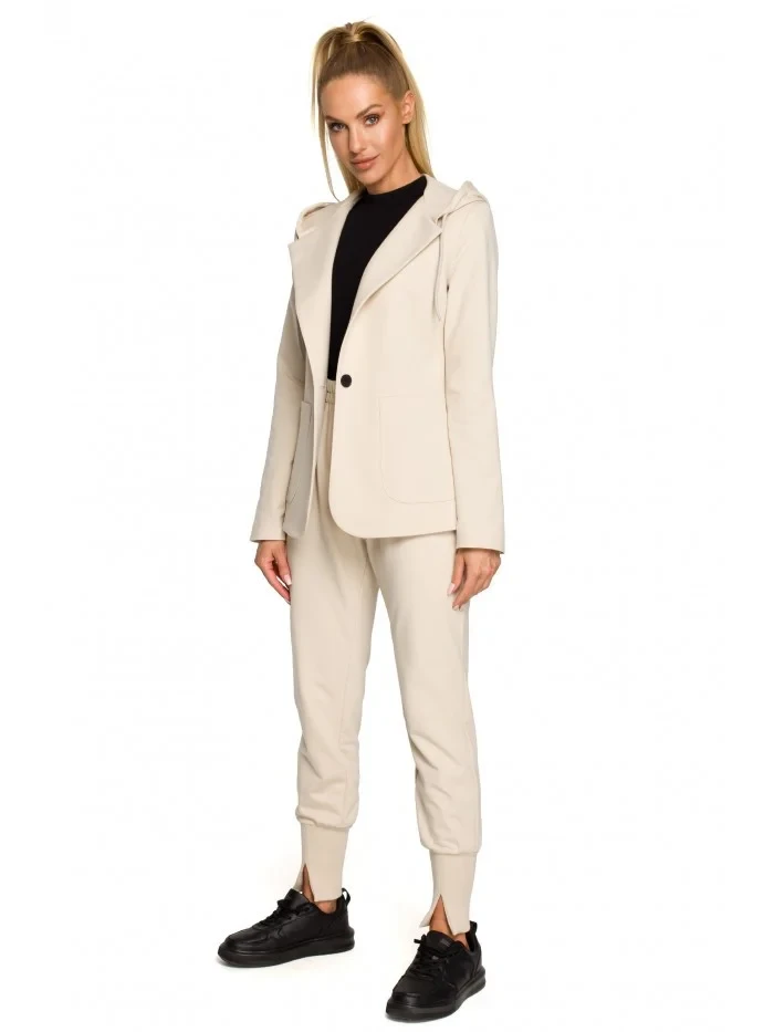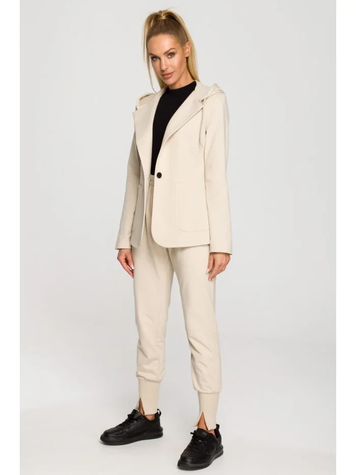 M691 Blejzr s kapucí a jedním knoflíkem - pískový