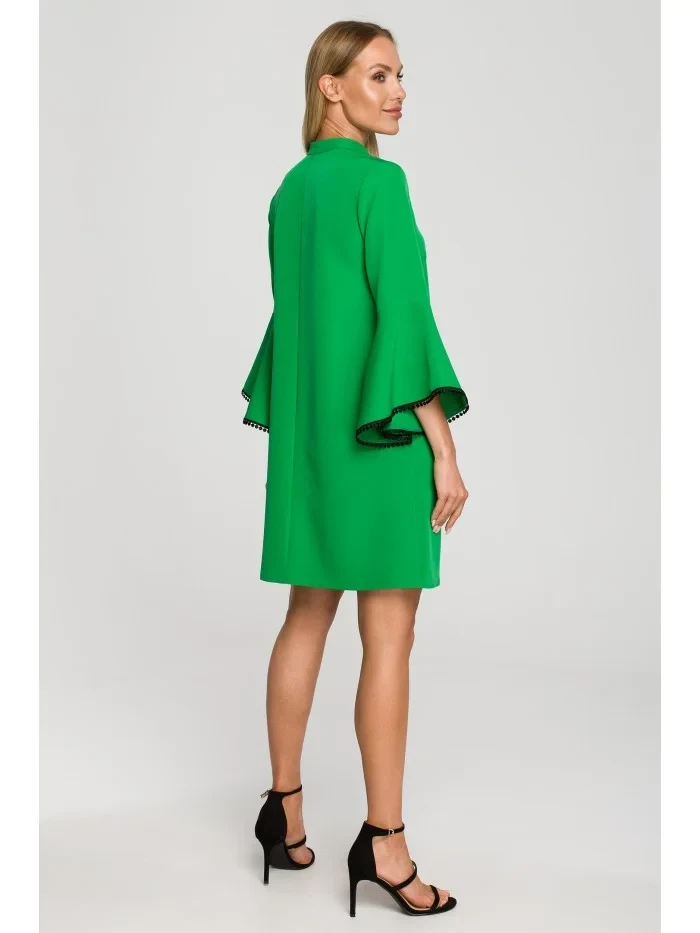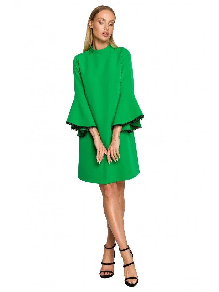 M698 Šaty áčkového střihu s andělskými rukávy - zelené